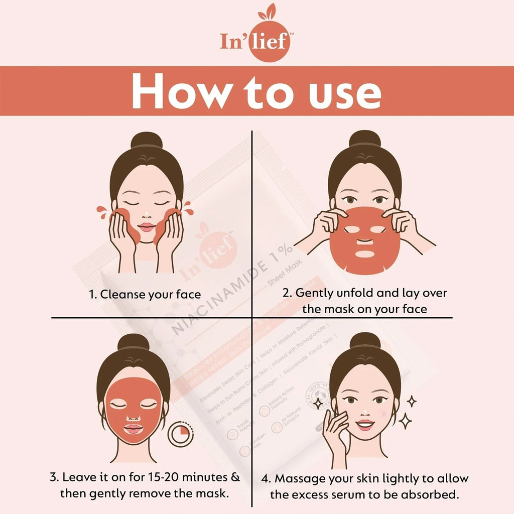 In’lief Niacinamide 1% Hydrating & Calming Facial Sheet Mask – Redness Soothing, Anti-Inflammatory, Skin Barrier Repair & Moisture Retention Mask with Pomegranate Extract - 1Pcs